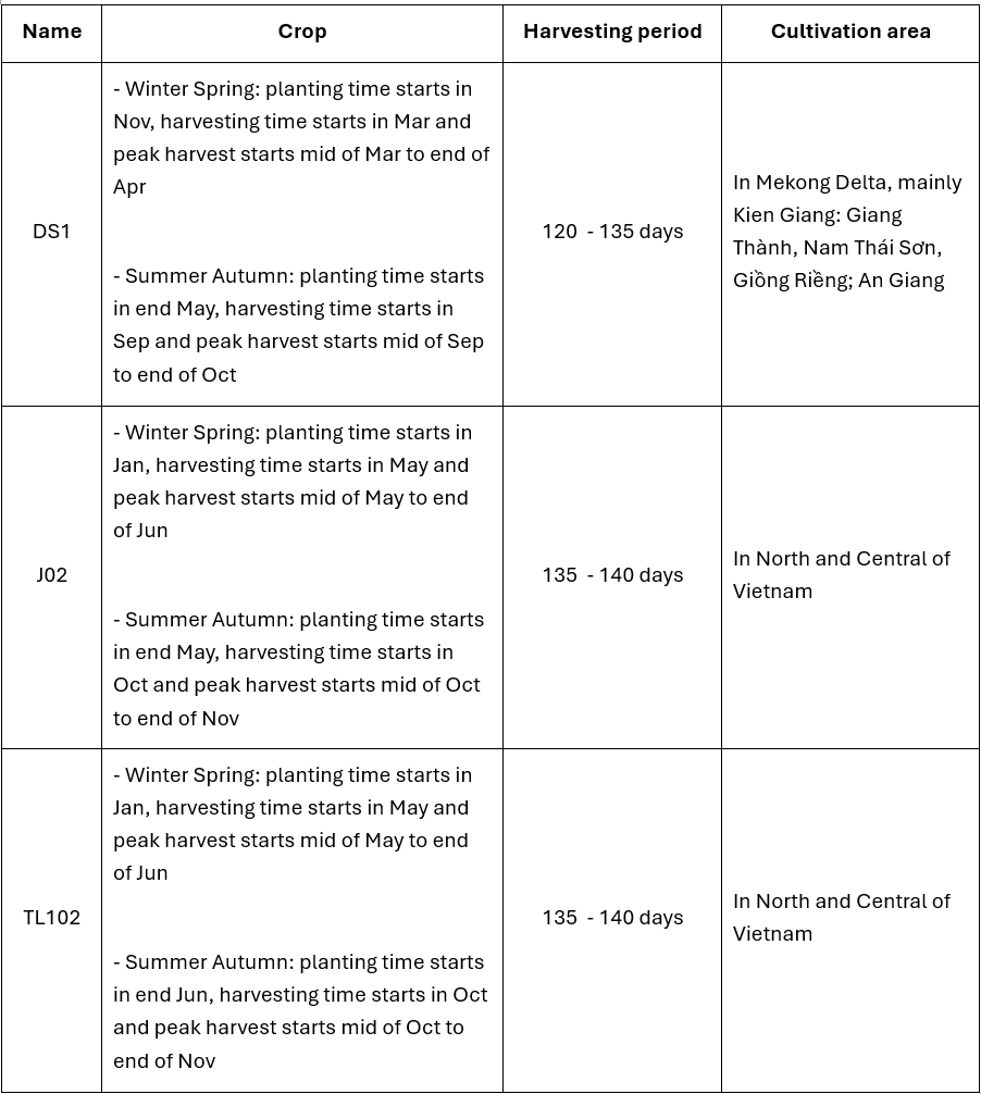 The soil characteristics in Kien Giang and An Giang provinces are quite similar to those in Australia. Therefore, these areas account for the largest Japonica production volume in Vietnam.