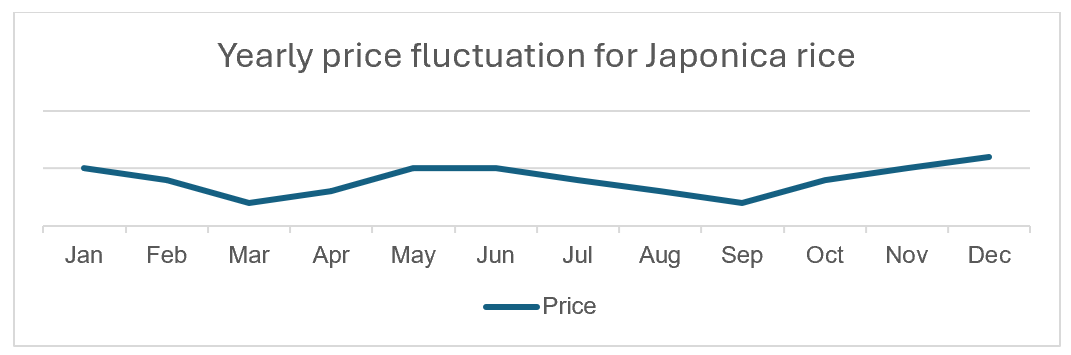 The price of Japonica tends to decline at the beginning of the harvest and falls most sharply during the peak of the harvest, particularly in April for the Winter - Spring crop and in September for the Summer - Autumn crop.