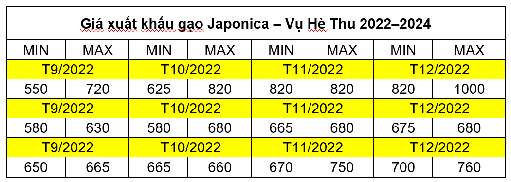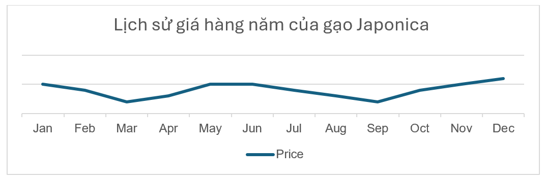Giá Japonica có xu hướng giảm vào đầu vụ thu hoạch và giảm mạnh nhất trong thời kỳ cao điểm thu hoạch, đặc biệt là vào tháng Tư đối với vụ Đông - Xuân và tháng Chín đối với vụ Hè - Thu.